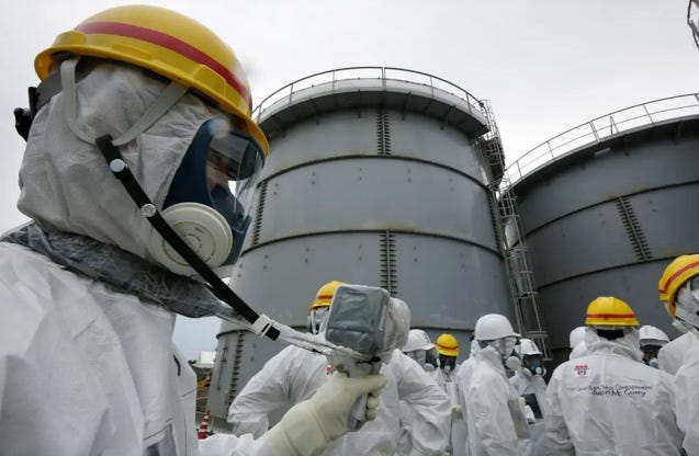 A Tokyo Electric Power Co. (TEPCO) employee wearing a protective suit and mask uses a survey meter near storage tanks for radioactive water in the H4 area where radioactive water leaked from a storage tank in August, at the tsunami-crippled TEPCO's Fukushima Daiichi nuclear power plant in Fukushima prefecture November 7, 2013. REUTERS/Kimimasa Mayama/Pool Japan Ratifies Decision to Dump Fukushima Nuclear Wastewater
