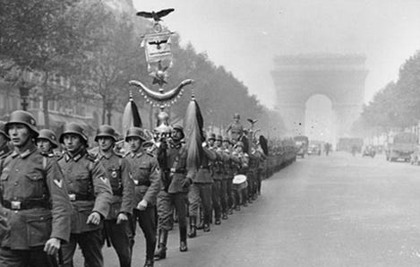 Nazi troops marching in ParisThe article is an interesting analysis of France’s relationship to what we call the Anglo-Euro-American banking cartel. The French have always defended their independence with a passion, even when under occupation; for example, by the Nazis, when an elaborate Resistance was formed.